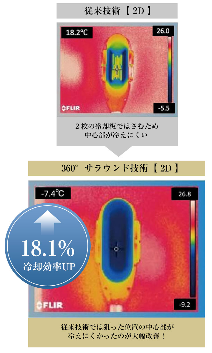3Dカップを採用!従来型より冷却効率が18.1%アップ!